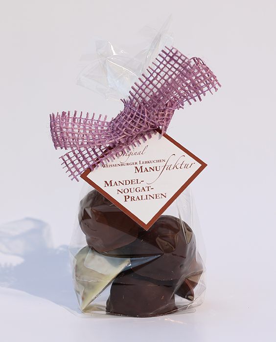 Feinste Mandelnougatpralinen mit feinem, ausgewogenen Mandelaroma und überzogen mit bester Kuvertüre in den Sorten Zartbitter, Vollmilch und weiße Kuvertüre
